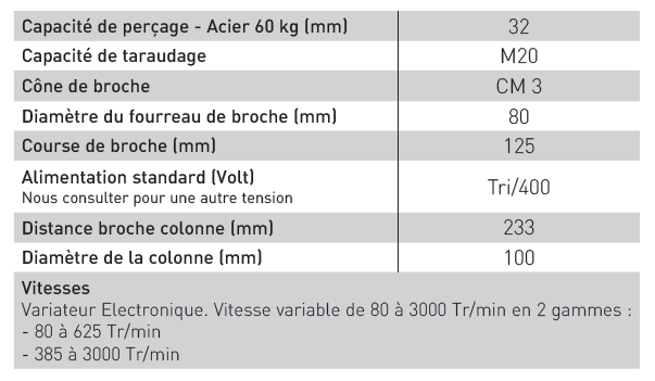 Perceuse à colonne professionnelle NC320, pour percer à 32 mm et tarauder jusqu’à M20 (en option) avec souplesse et grande précision. Perceuse polyvalente, s’intégrant aussi bien dans un atelier de maintenance que de production, son écran tactile permet une programmation simple et rapide de la vitesse de broche.