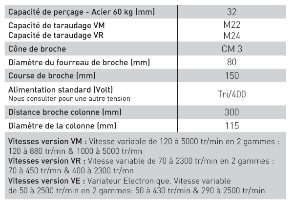 Perceuse à colonne professionnelle PC32 VR/VM/VE