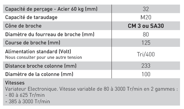 Perceuse Fraiseuse SA30/CM3 NF320V, Perceuse Fraiseuse avec descente micrométrique très précise. Pour les travaux de perçage, fraisage et taraudage. Idéale pour le travail en atelier. Variateur électronique, écran tactile de programmation, adapte sa vitesse de broche en fonction de la matière.